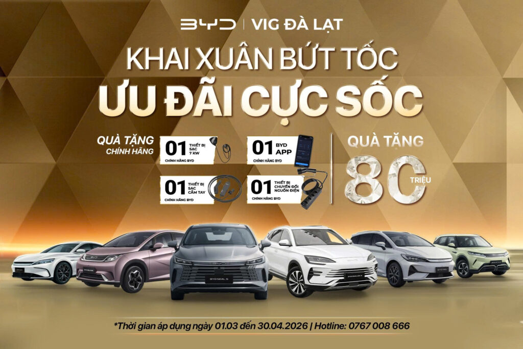 Từ ngày 01/03 đến 30/04/2026, khách hàng mua xe điện BYD sẽ nhận được tổng giá trị ưu đãi và quà tặng lên đến 100.000.000 VNĐ (tùy phiên bản). Đây là một trong những chương trình hấp dẫn nhất đầu năm, giúp bạn dễ dàng tiếp cận công nghệ xe điện tiên tiến với chi phí tối ưu.